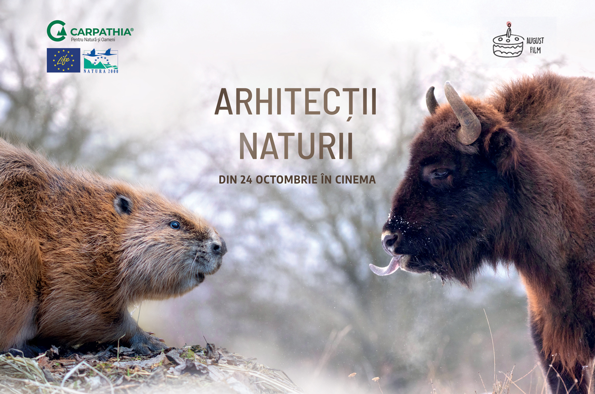 Povestea spectaculoasă a reîntoarcerii zimbrilor și a castorilor în Munții Făgăraș ajunge pe marile ecrane. Documentarul Arhitecții Naturii, realizat de regizorul Dan Dinu împreună cu echipa NTD Film și Fundația Conservation Carpathia, va rula în cinematografele din România începând cu 24 octombrie și promite o experiență vizuală captivantă și emoționantă. Distribuit de August Film.